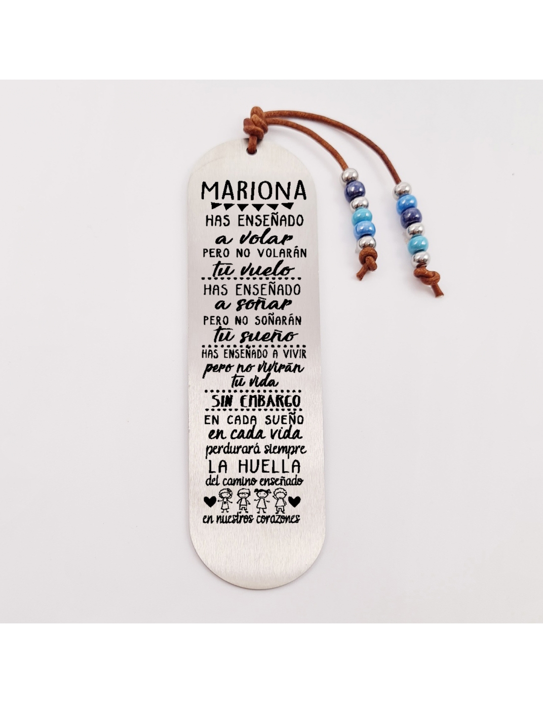 Recomendamos no mojar el marca páginas, manteniendo de este modo el brillo del acero y evitando el deterioro anticipado del algodón a modo de borla.