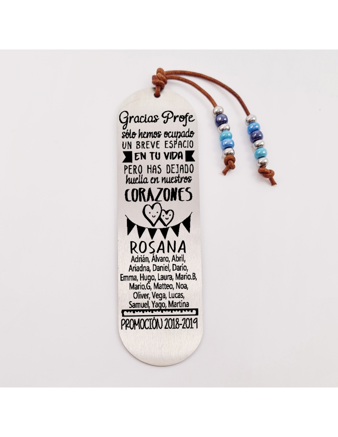 Recomendamos no mojar el marca páginas, manteniendo de este modo el brillo del acero y evitando el deterioro anticipado del algodón a modo de borla.