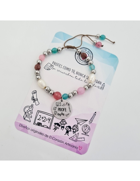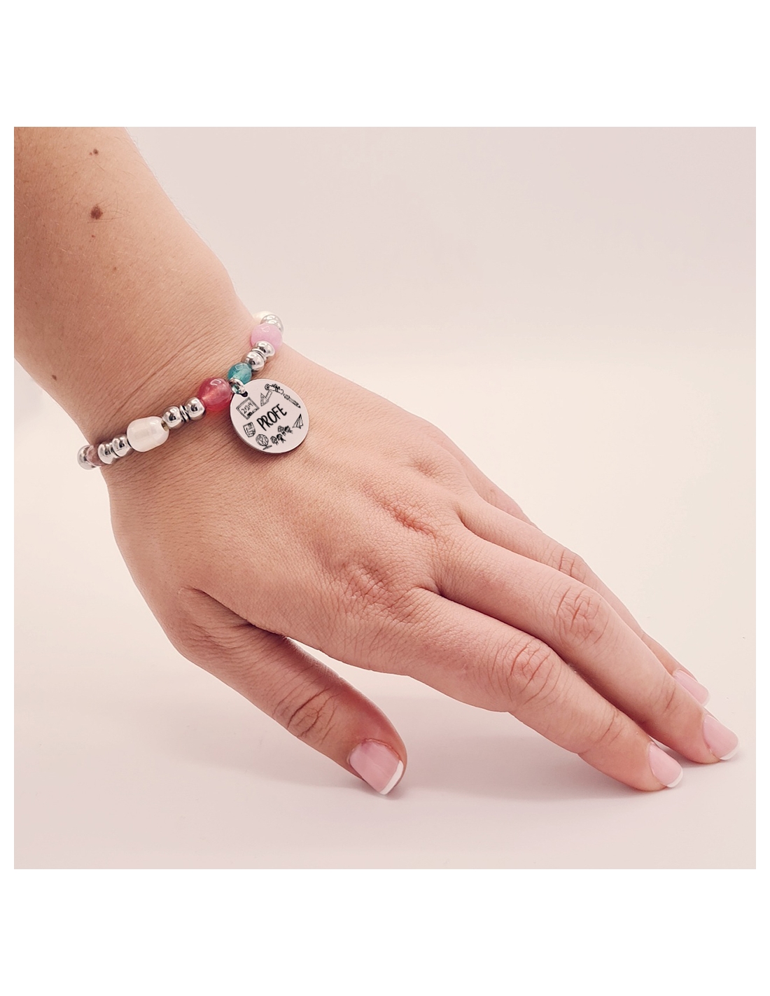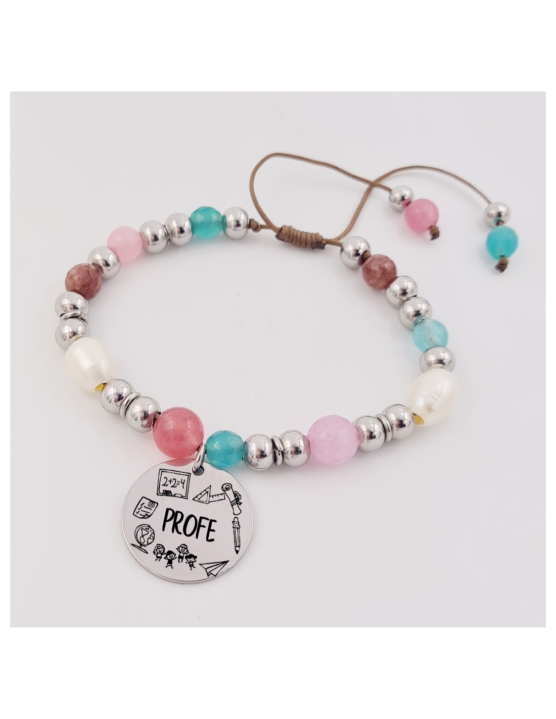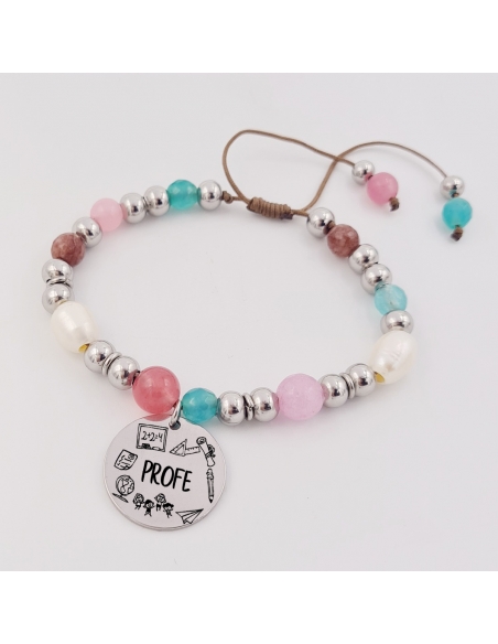 Pulsera, modelo Aurora-2, (Pulsera profe) con ágatas, nácar y perlas barrocas, acero inoxidable, ajustable.