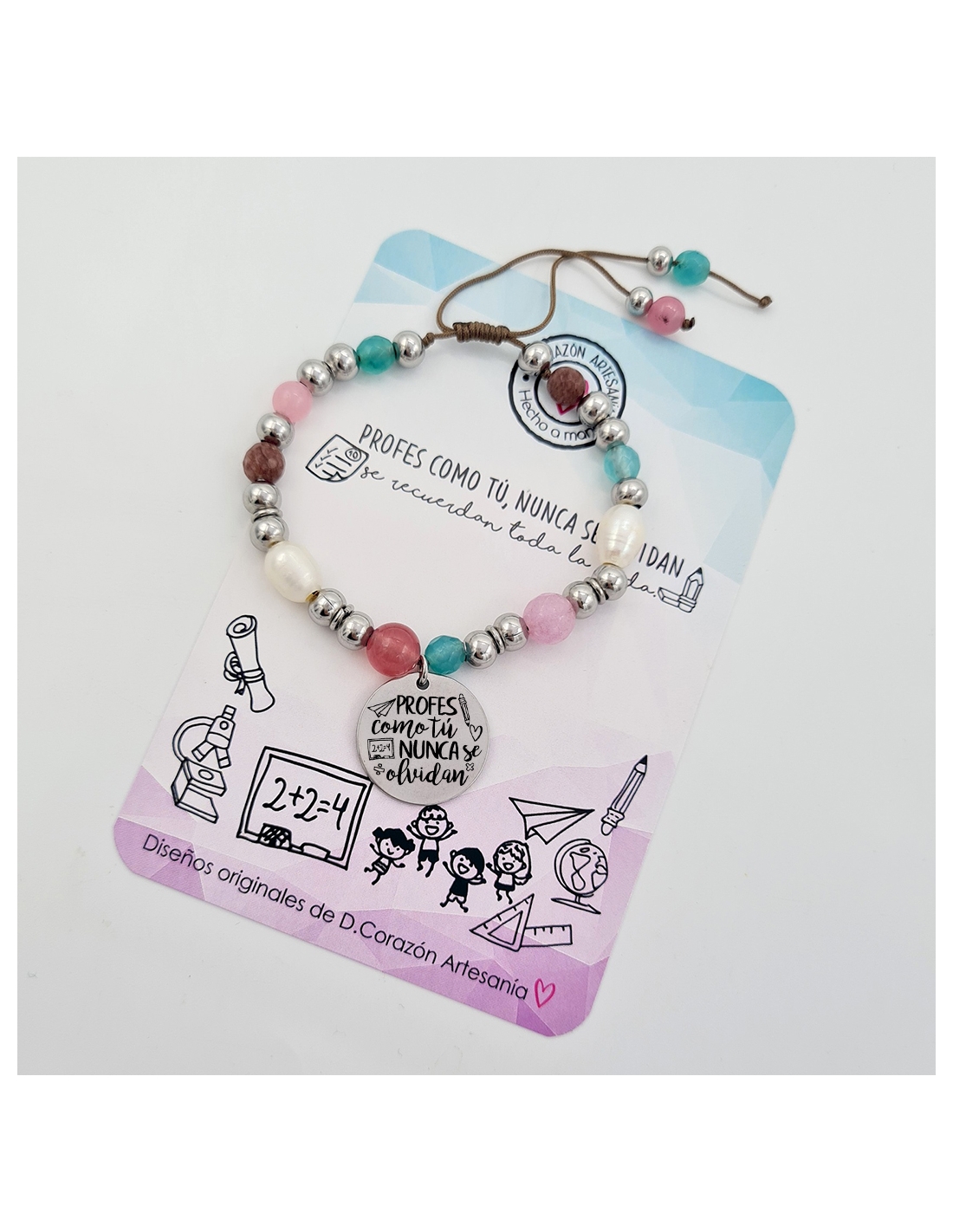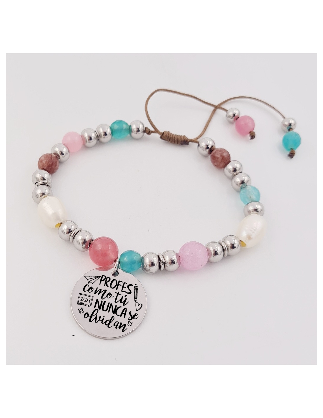 Pulsera, modelo Aurora-2, (Profes como tu nunca se olvidan) con ágatas, nácar y perlas barrocas, acero inoxidable, ajustable.
