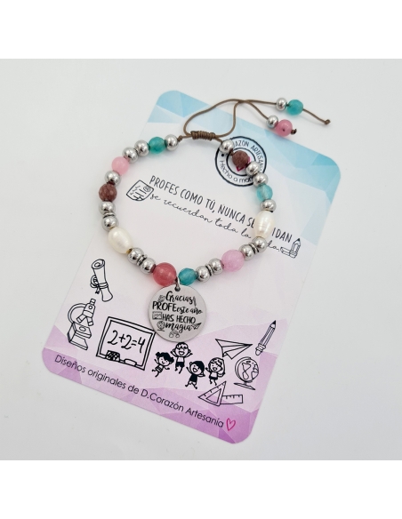 Pulsera, modelo Aurora-2, (Gracias profe, este año has hecho) con ágatas, nácar y perlas barrocas, acero inoxidable, ajustable.