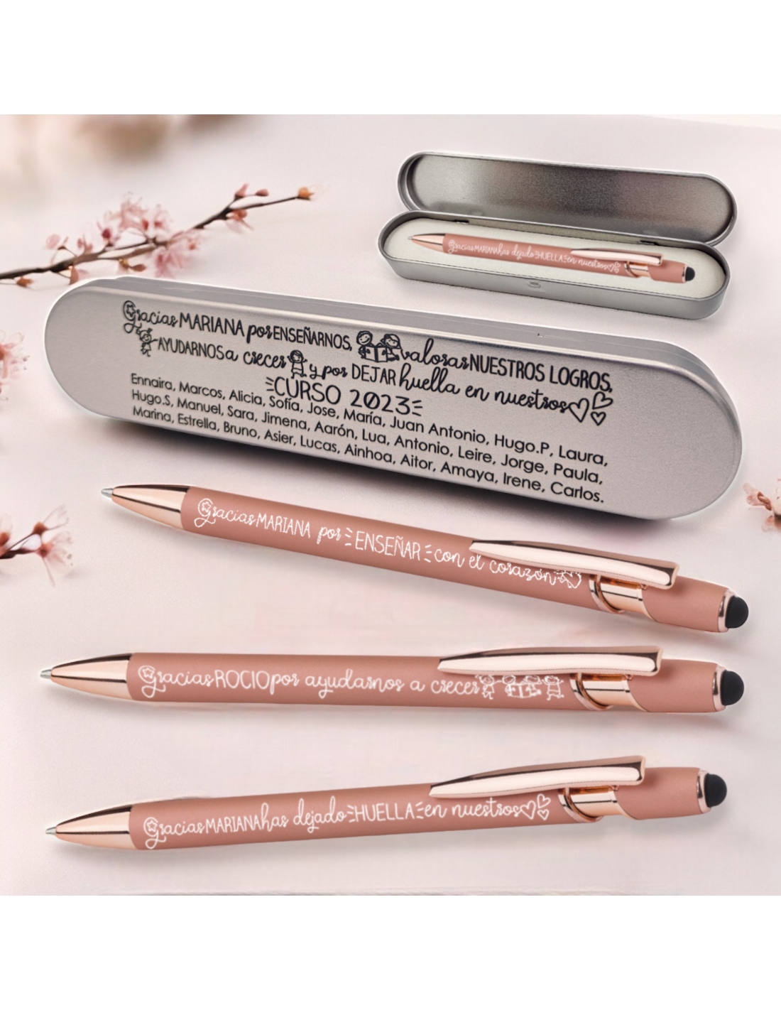 Bolígrafo personalizado para profesores, incluye estuche con frase (Gracias NOMBRE por enseñarnos, valorar nuestros logros...).