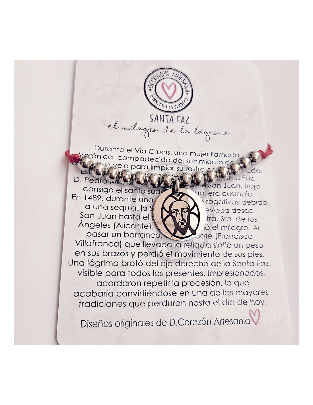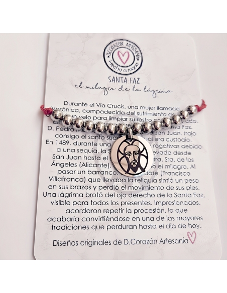 La placa de la pulsera mide 20mm y las bolas 5mm y 6mm.