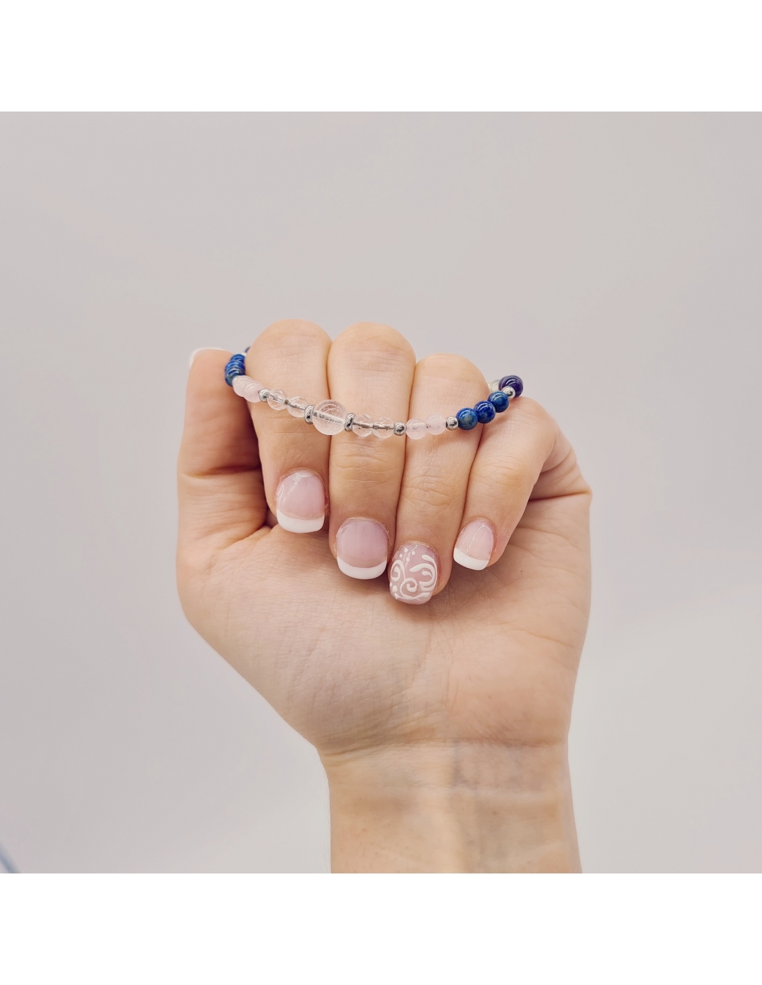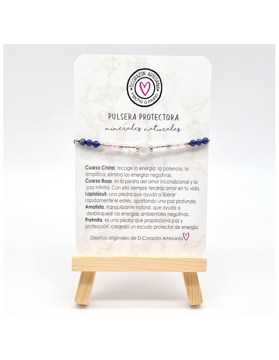Prenhita, Amatista, Lapislázuli, Cuarzo Rosa, Cuarzo Cristal.