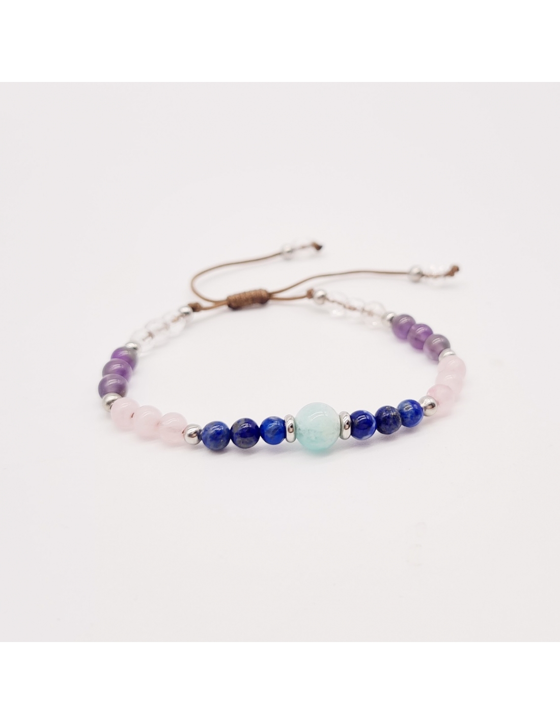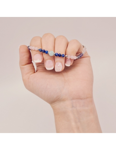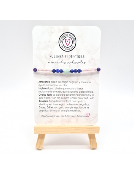Pulsera Protectora, Amazonita, Lapislázuli, Cuarzo Rosa, Amatista, Cuarzo Cristal, piedras energéticas, ajustable.