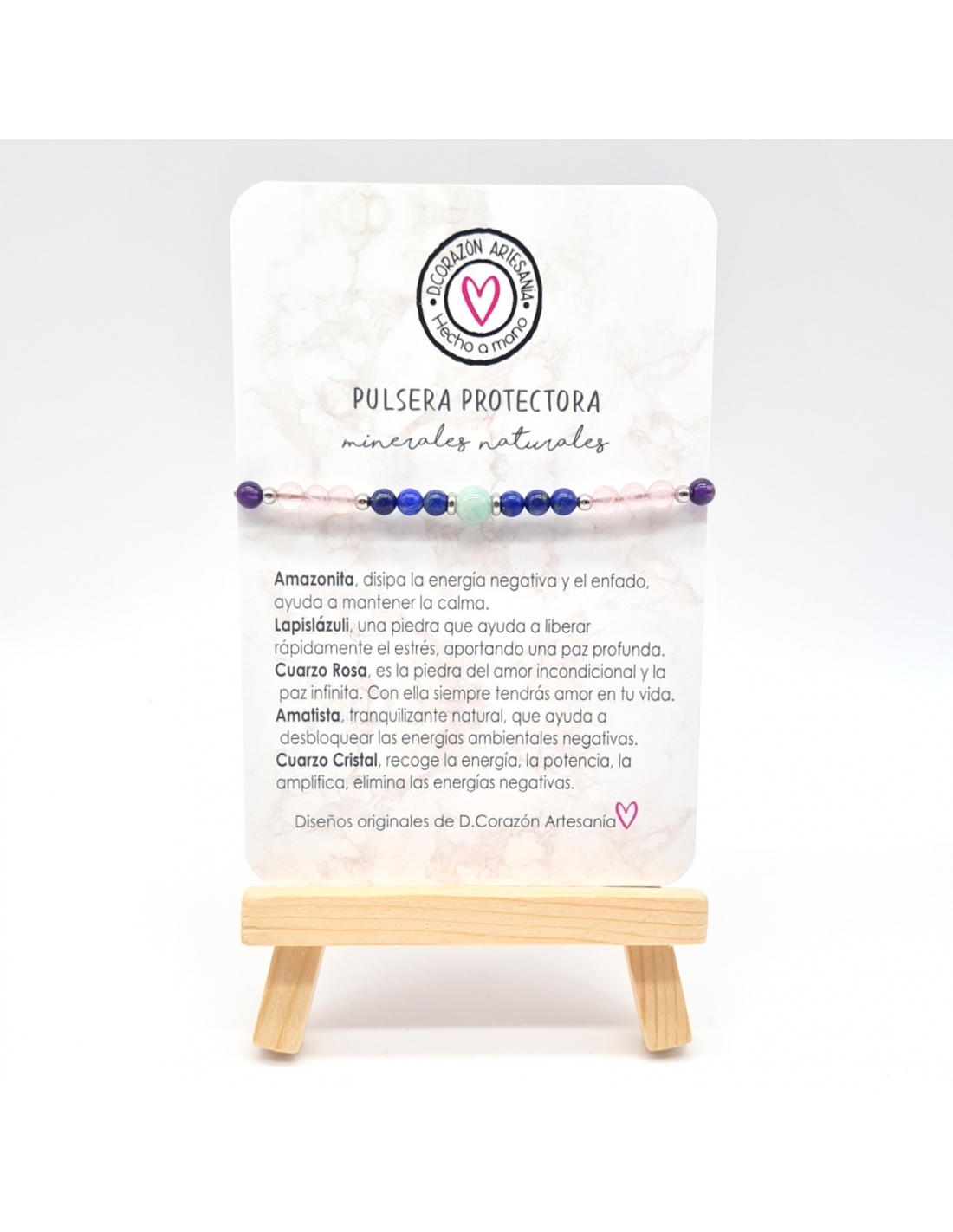 Amazonita, Lapislázuli, Cuarzo Rosa, Amatista, Cuarzo Cristal.
