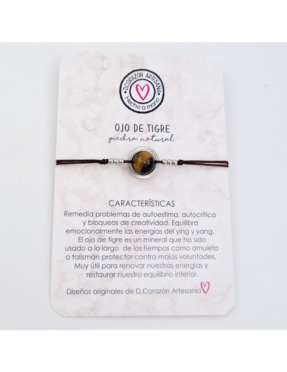 Remedia problemas de autoestima, autocrítica y bloqueos de creatividad. Equilibra emocionalmente las energías del ying y yang. El ojo de tigre es un mineral que ha sido usado a lo largo de los tiempos como amuleto o talismán protector contra malas voluntades. Muy útil para renovar nuestras energías y restaurar nuestro equilibrio interior.
