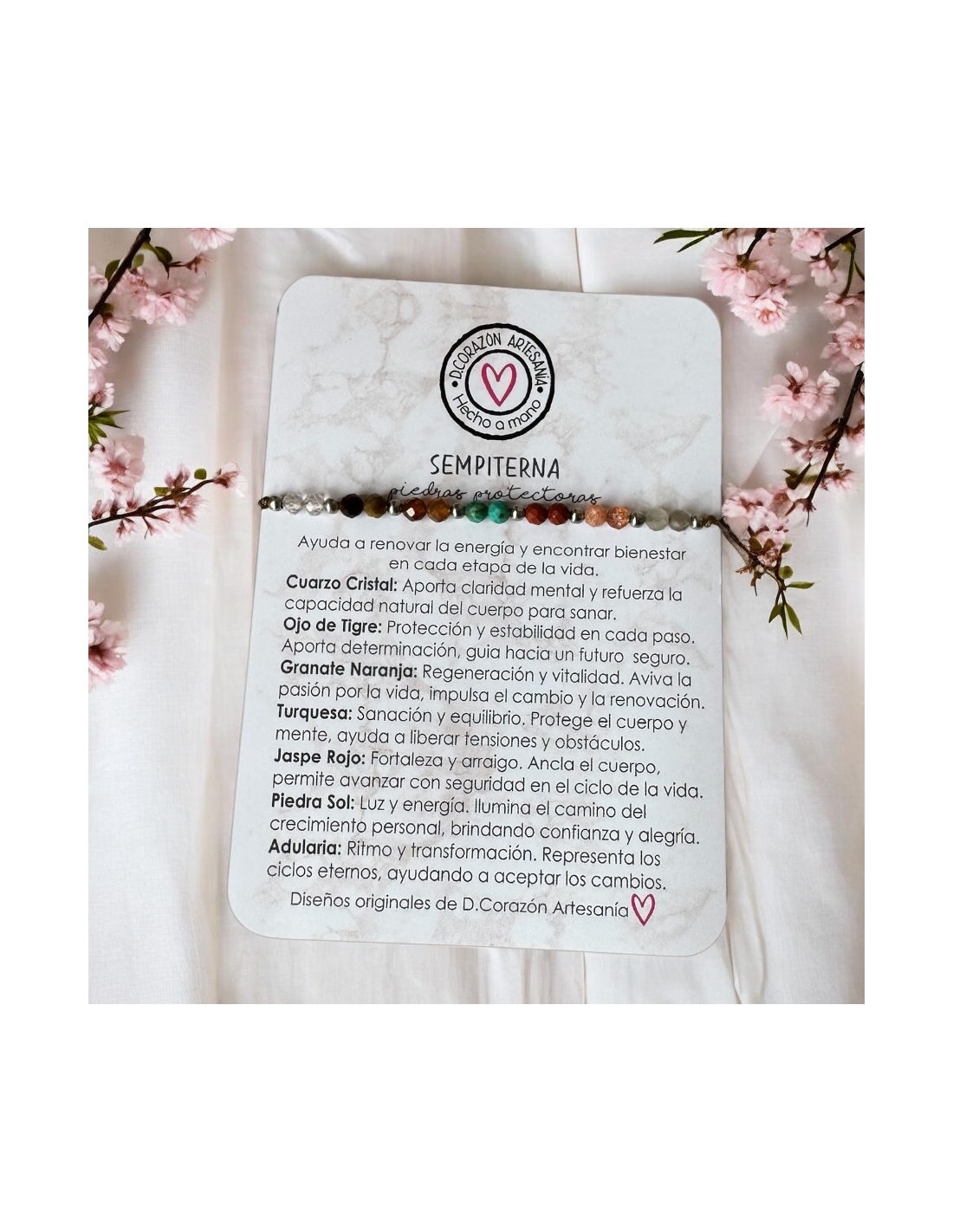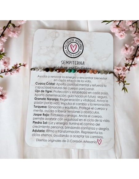 Pulsera Protectora SEMPITERNA, refuerza sanación, equilibra cuerpo y mente, otorga fortaleza (piedras energéticas) ajustable.
